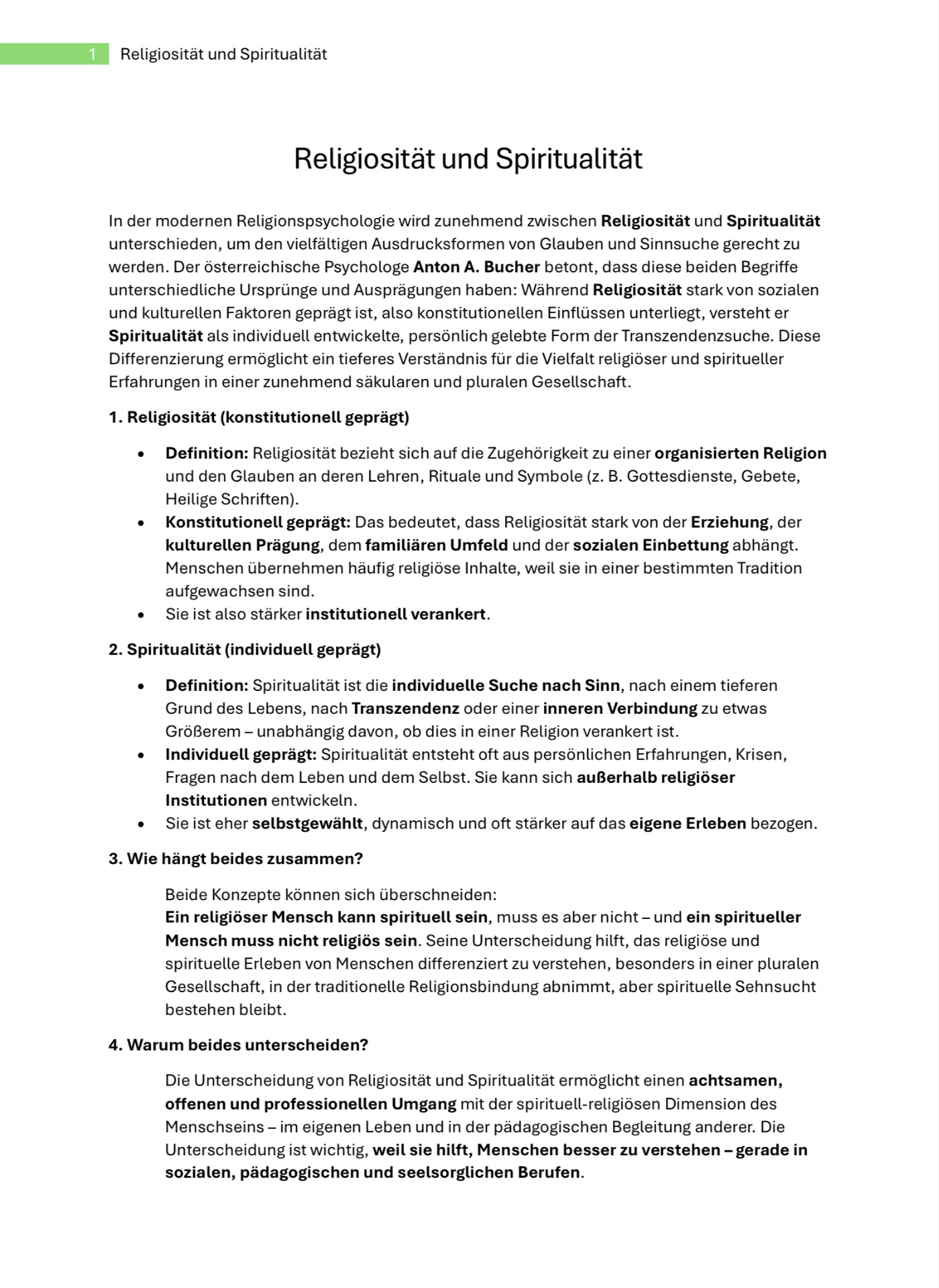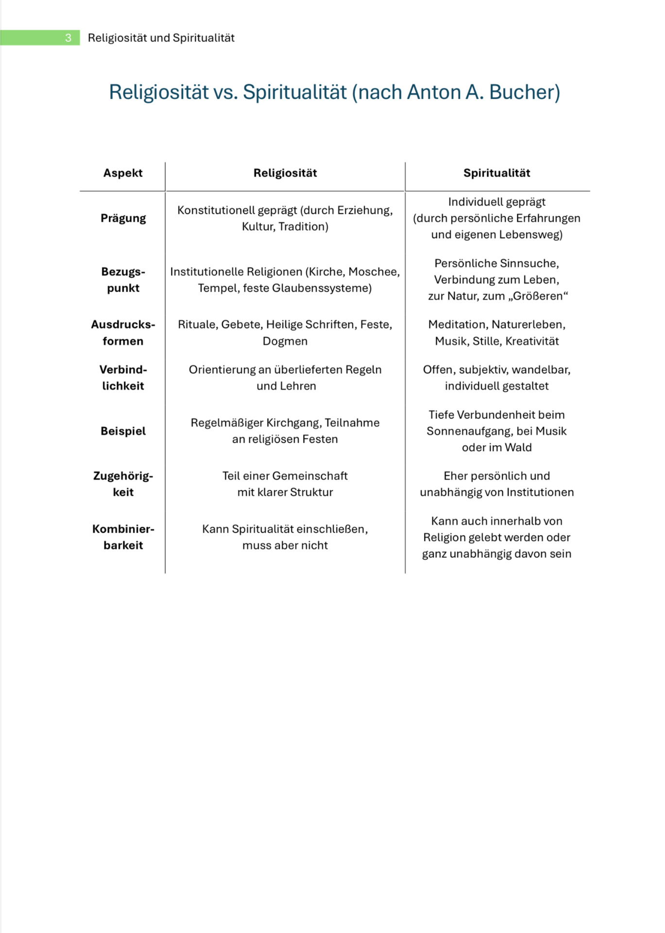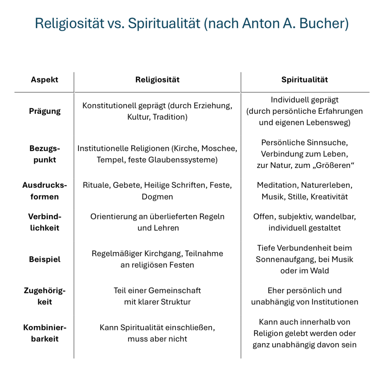 In der modernen Religionspsychologie wird zunehmend zwischen Religiosität und Spiritualität unterschieden, um den vielfältigen Ausdrucksformen von Glauben und Sinnsuche gerecht zu werden. Der österreichische Psychologe Anton A. Bucher betont, dass diese beiden Begriffe unterschiedliche Ursprünge und Ausprägungen haben: Während Religiosität stark von sozialen und kulturellen Faktoren geprägt ist, also konstitutionellen Einflüssen unterliegt, versteht er Spiritualität als individuell entwickelte, persönlich gelebte Form der Transzendenzsuche. Diese Differenzierung ermöglicht ein tieferes Verständnis für die Vielfalt religiöser und spiritueller Erfahrungen in einer zunehmend säkularen und pluralen Gesellschaft.